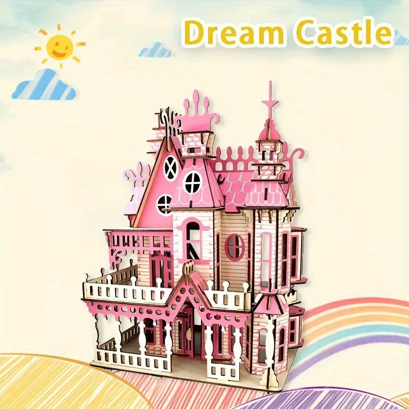 Willkommen in der märchenhaften Welt des Dream Castle! Dieses wunderschöne, detailreiche Puppenschloss aus hochwertigem Holz lässt Kinderherzen höher schlagen. Mit seinen verschnörkelten Türmen, romantischen Balkonen und filigranen Fenstern lädt es zum fantasievollen Spielen ein.